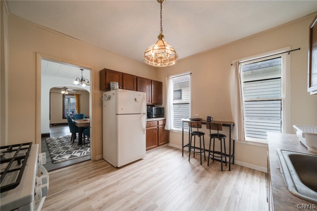 Looking for an investment opportunity in the city of Syracuse? This Northside bungalow, 113 Lawerance St, is the PERFECT starter home or addition to your portfolio! Boasting over 1200 SQFT, this two bedroom house is loaded with potential! Enter through the enclosed front porch & into the LARGE liviingroom! The flooring & carpet has been update in the past 5 years! The formal dining room offers plenty of natural light! The kitchen features plenty of cabinet space & built in pantry! Enjoy the convenience of first floor laundry! The tiled bath offers a tub & stand-up shower! The two bedrooms upstairs are generous sized with enough closet space! New lighting fixtures throughout! The furnace was also rewired with new motherboard & blower! Off-street parking with a garage is a bonus! Some TLC would go a long way at 113 Lawerance St! Here's your chance to enter into real estate investment world!