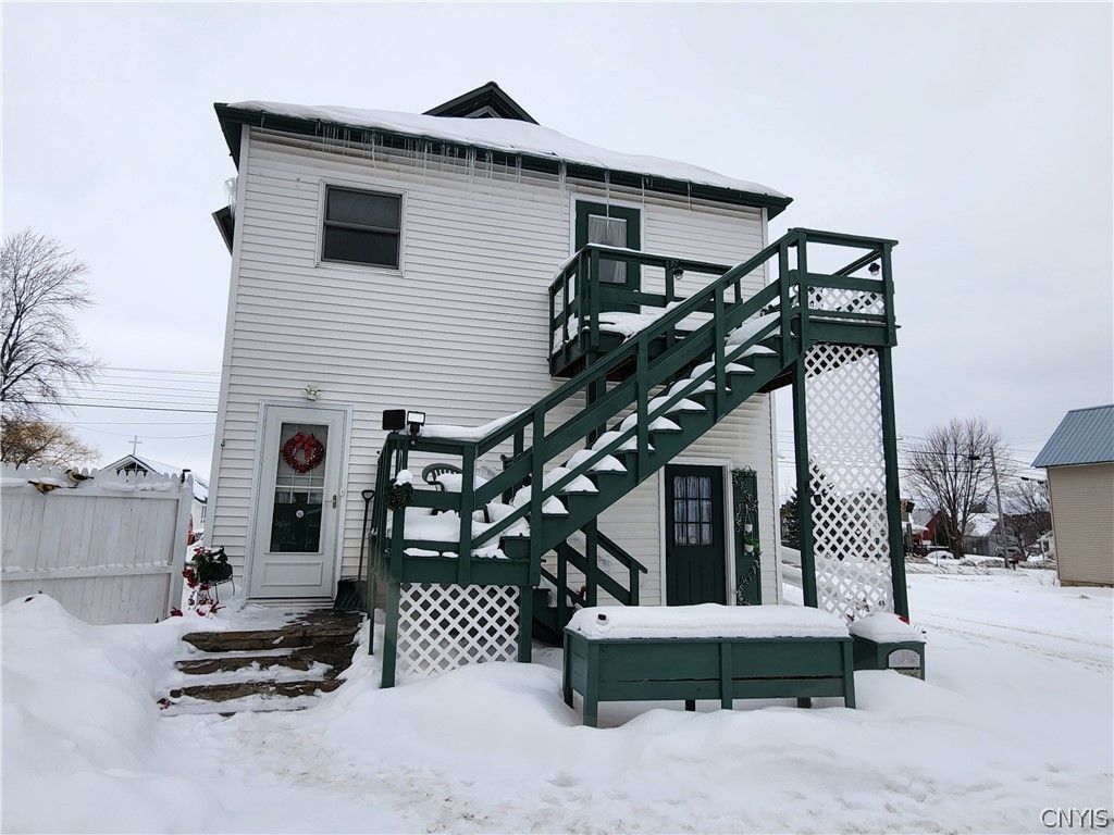 Welcome to this beautiful home in the heart of Hammond! Full of charm and opportunity, this spacious property offers 4+ bedrooms and room to grow. Step inside to a cozy living room featuring a stunning propane fireplace - perfect for chilly North Country evenings. Snuggle up, relax, and enjoy the warm glow all winter long. Enter through the back door into a large mudroom, ideal for keeping coats, boots, and everyday clutter neatly organized. Outside, you'll love the wrap-around covered porch - the perfect place to unwind, entertain, and enjoy hours of fresh air and peaceful surroundings. Designed with accessibility in mind, the property features a wheelchair ramp and a handicap-accessible entrance leading directly into the kitchen - providing convenience and ease of entry for all. Upstairs, a bonus space with its own private entrance opens the door to endless possibilities. Use it as an additional bedroom, home office, studio, or explore the potential of converting the home into a two-family investment property. The spacious attic provides excellent storage or could easily be transformed into a playroom or game room. Out back, a large parking area accommodates 8-10 vehicles - plenty of room for guests, recreational vehicles, or all your toys. Located just minutes from the beautiful St. Lawrence River and Black Lake, this home offers easy access to some of the area's best boating, fishing, and outdoor recreation. Being sold AS IS and move-in ready, this charming home is packed with potential and ready for its next chapter. Don't wait - schedule your private showing today!